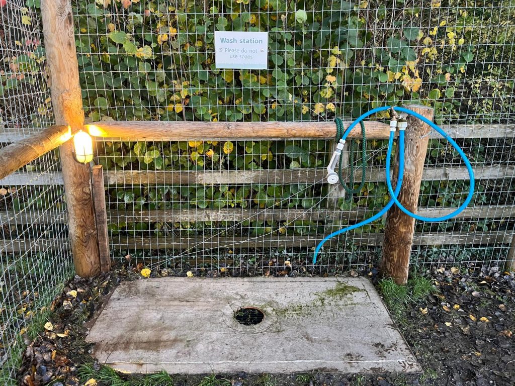 Our wash station allows you to clean muddy paws and boots before entering your car